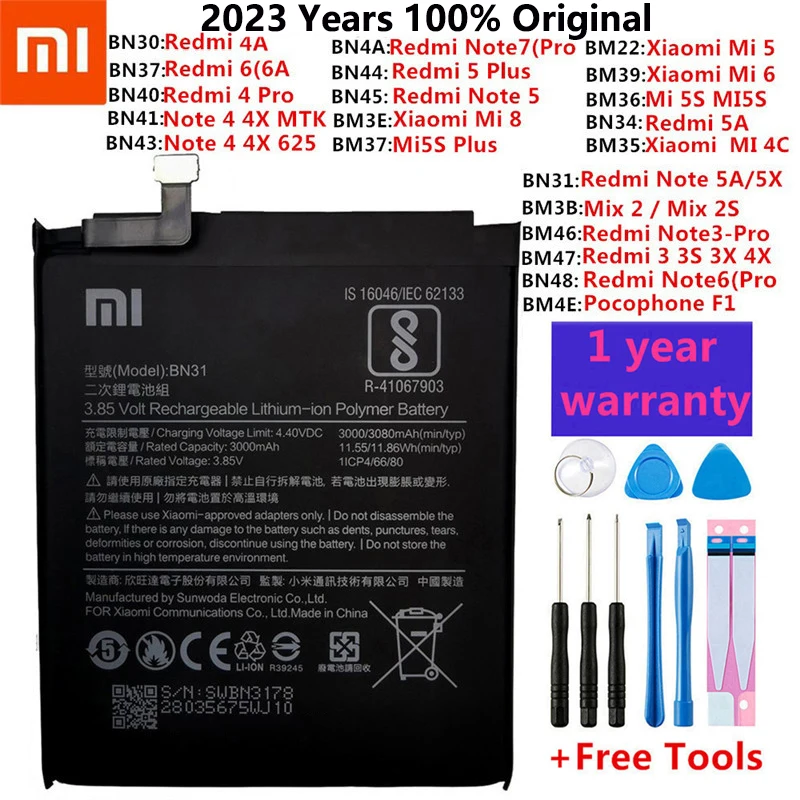 Купить Xiao Mi Original Phone Battery For Xiaomi Redmi Note 3 3S 3X 4X 4A 5 Plus 3 4 5 5A 6A 6 7 Pro Mi5 Mi 8 4C 5X Mi6 Mix2 Batteries за 550рублей