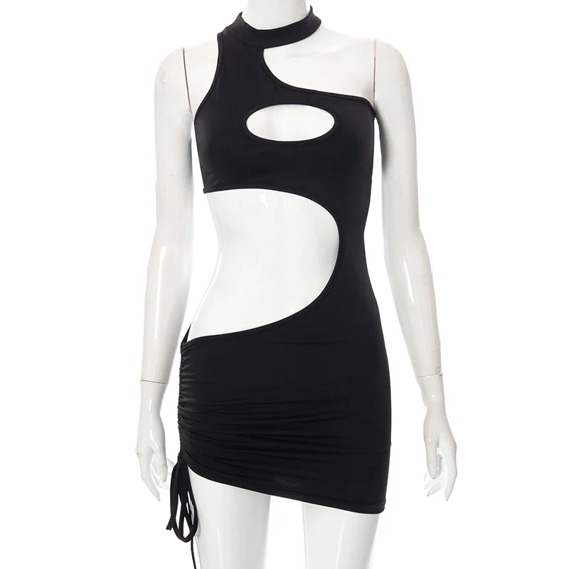 Купить Y-L HOT Summer For 2022 Halter Designer Clothes Hollow Shirring Evening Party Sexy Women'S Prom One Piece Basic Bodycon Dress за 550рублей