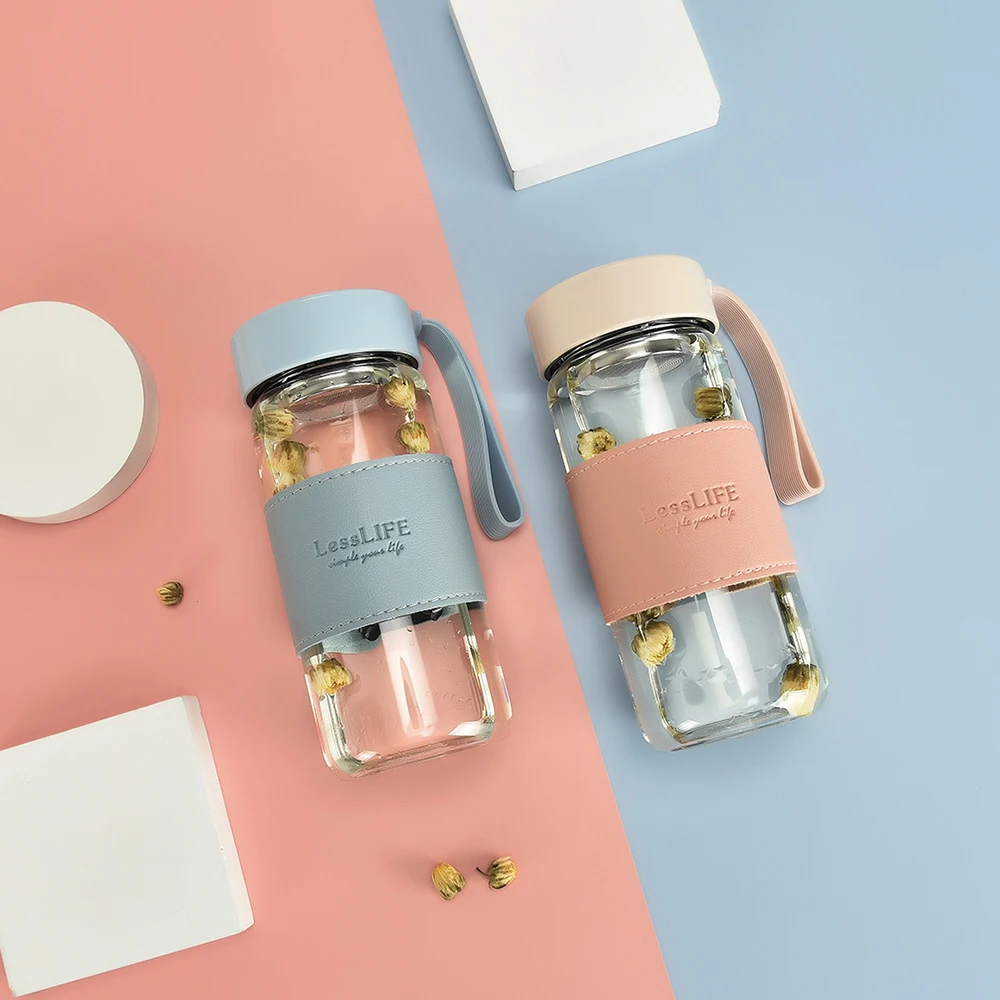 Купить YCONTIME 480ML Portable Cute Heat Resistant Glass Bottle For Drink Cold Water Juice Tea With Screw Lid Filter Net Easy To Carry за 900рублей