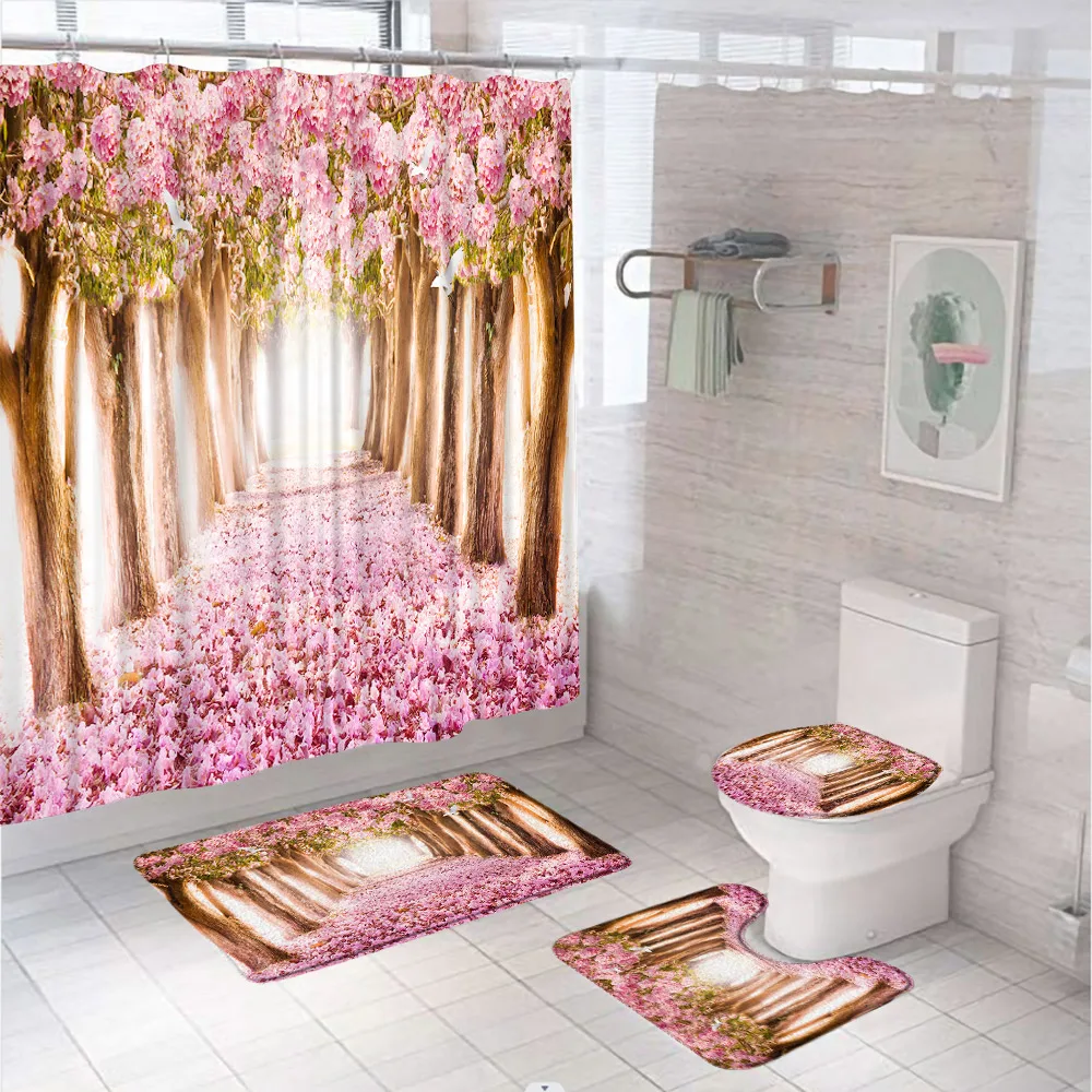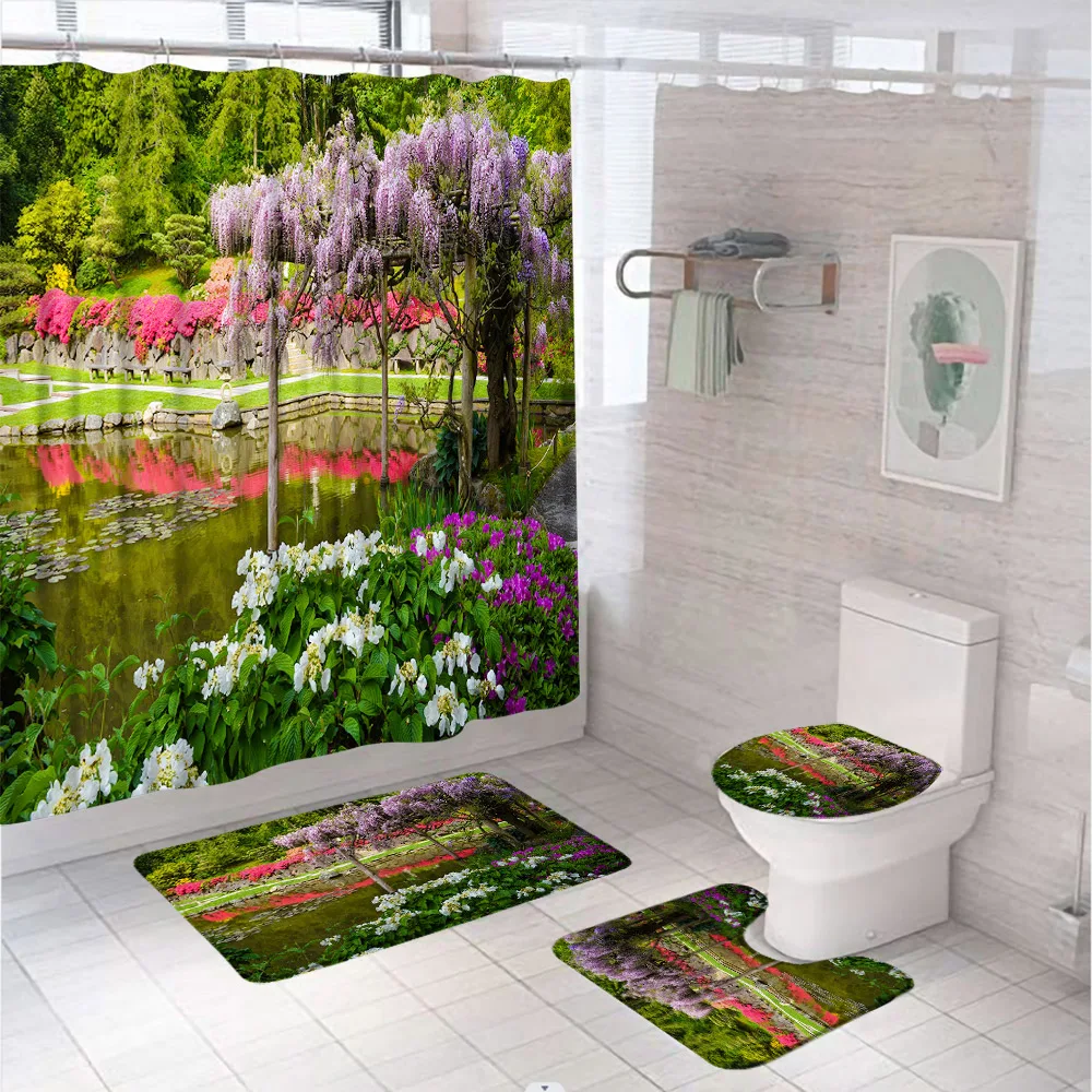 Купить Yellow Maple Tree Leaves Garden Shower Curtain Set Forest Flower Window Scenery Bathroom Screen With Bath Mats Rug Toilet Covers за 1600рублей