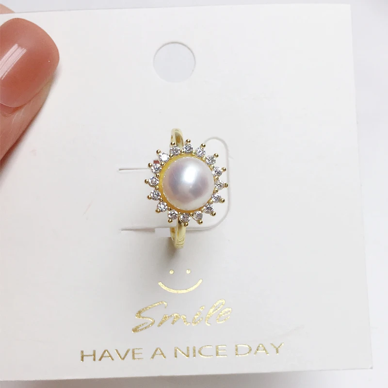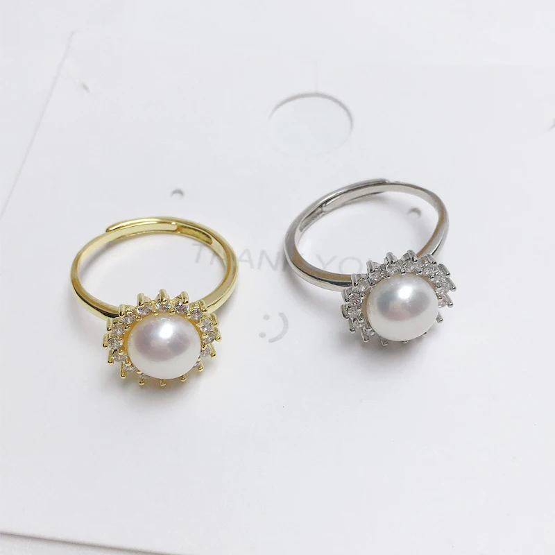 Купить ZHBORUINI 2021 Pearl Ring 100% Real Natural Pearl Two Color 925 Sterling Silver Rhinestone Ring Women Simple Vintage Jewelry за 250рублей