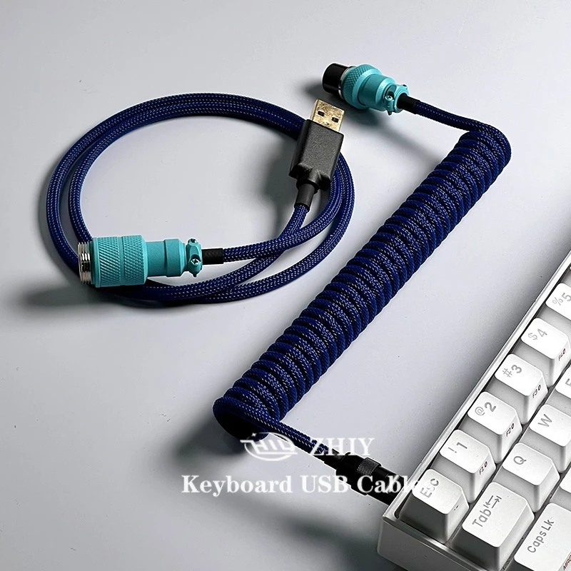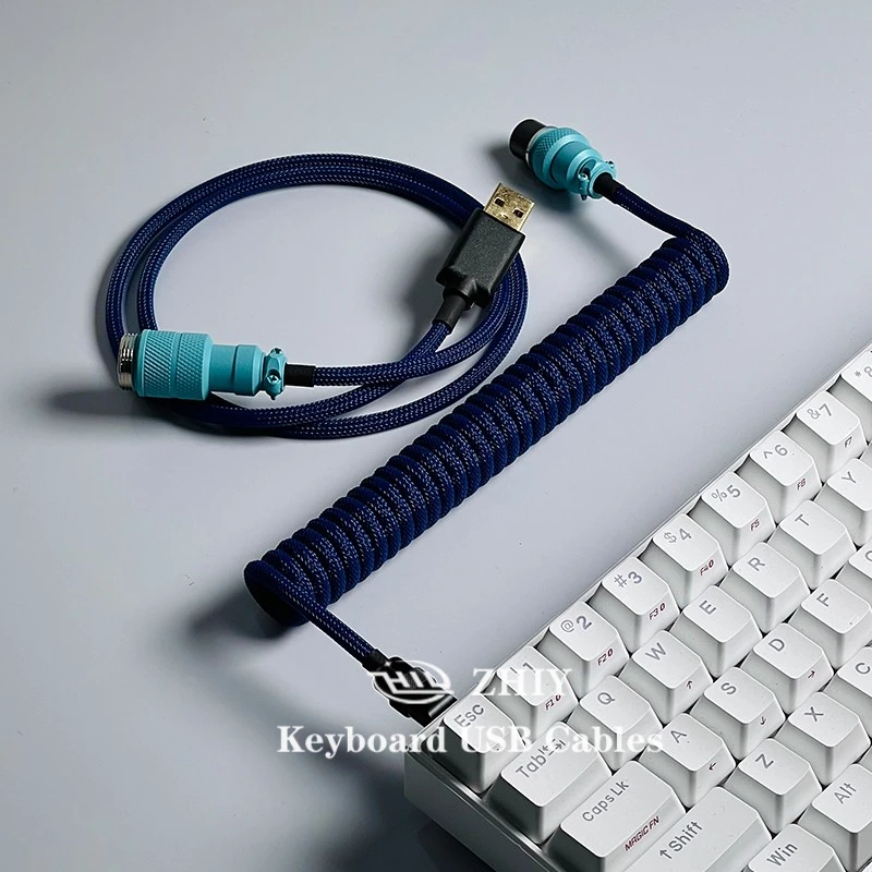 Купить ZHIY Navy Blue Colorway Keyboard USB Cable Aviation Plug Data Cable Type-C To USB Connector Mechanical Keyboard Charging Cable за 1950рублей