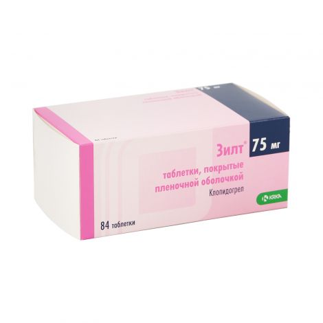 Зилт, 75 мг, таблетки, покрытые пленочной оболочкой, 28 шт . По рецепту Внешний вид упаковки может отличаться от фотографии Средняя цена в аптеках 1 051 ₽ В наличии в 3642 аптеках Цена от 455 ₽ Купить в 1 клик 28 шт . от 455 ₽ 84 шт . от 945 ₽ 4 .9 на основе 7 отзывов Действующее вещество Клопидогрел Производитель KRKA Страна Россия