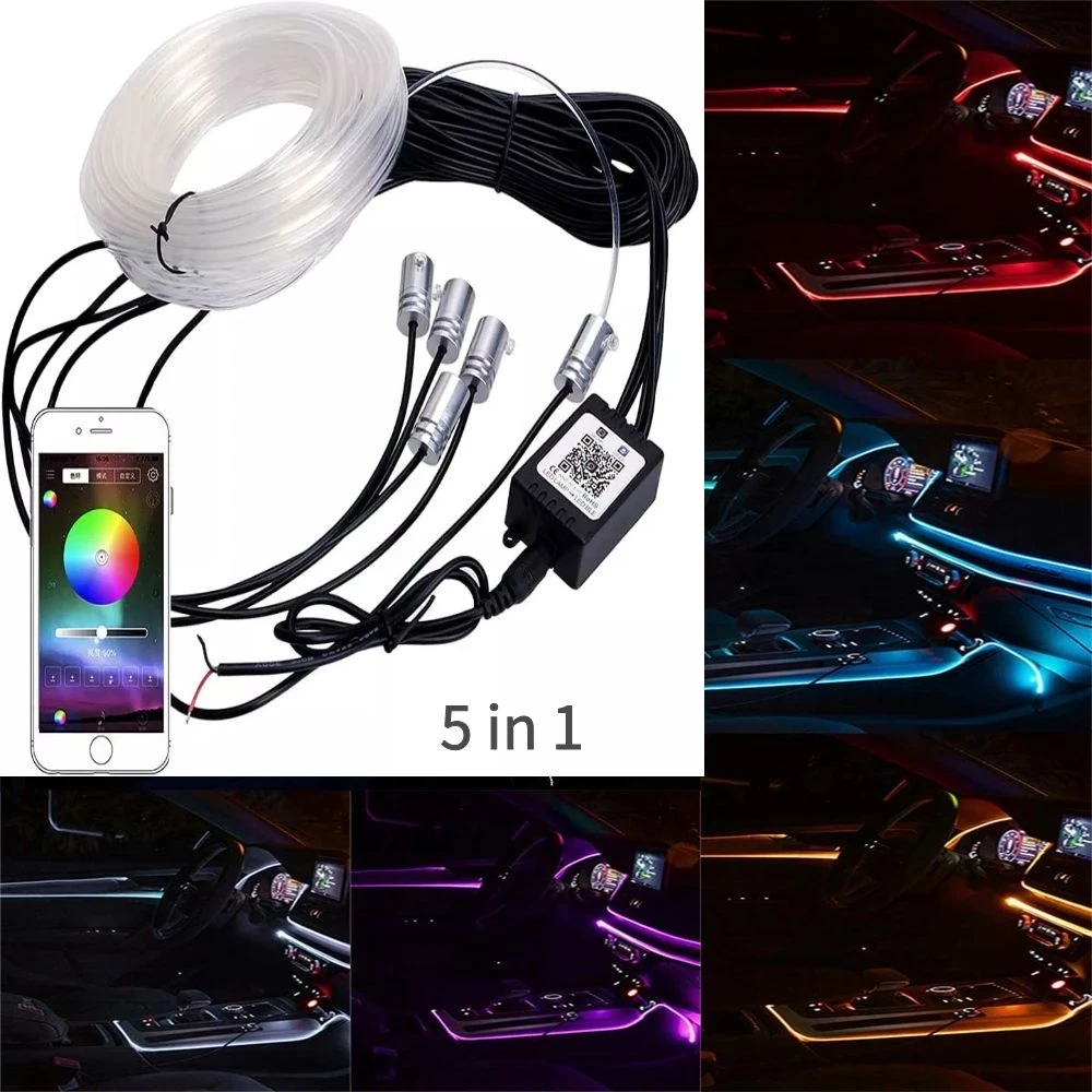 Купить car led decorative lamp 6 in 1 APP Control led light strip Multicolor RGB Aotu Interior Lights Atmosphere Optical Fiber Lamp за 1050рублей