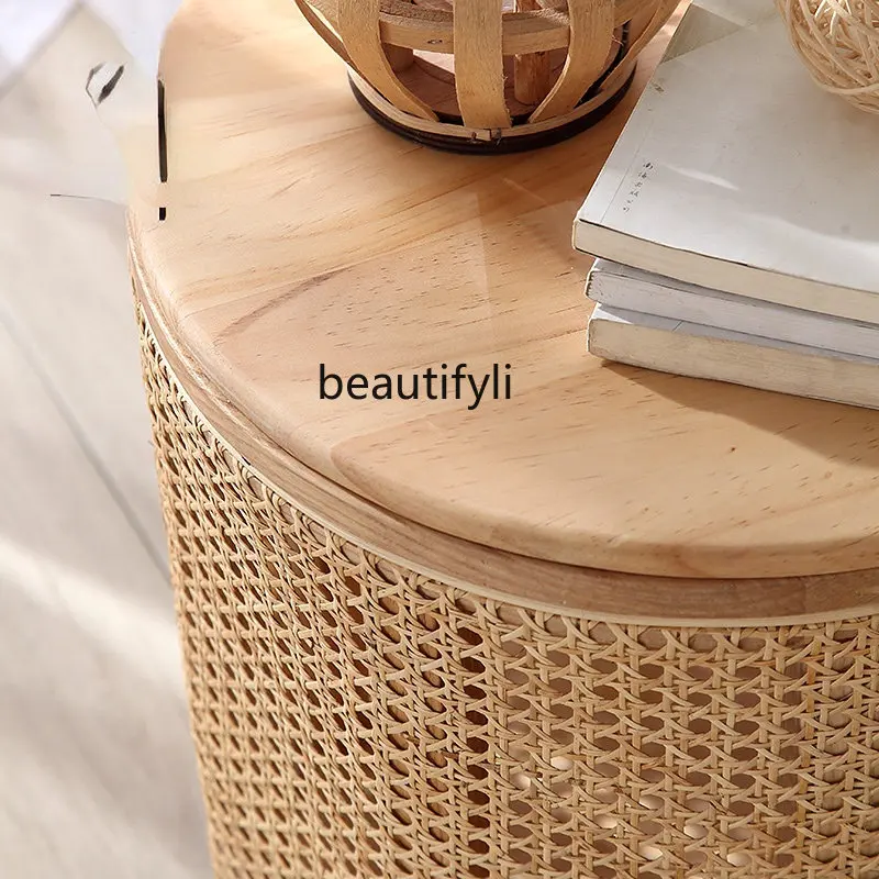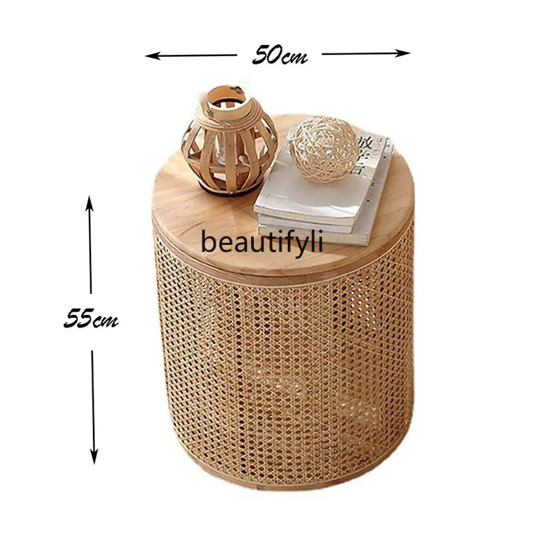 Купить cqy Japanese-Style Solid Wood Side Table Living Room Rattan Small Coffee Table Leisure Simple round Tea Table за 11550рублей