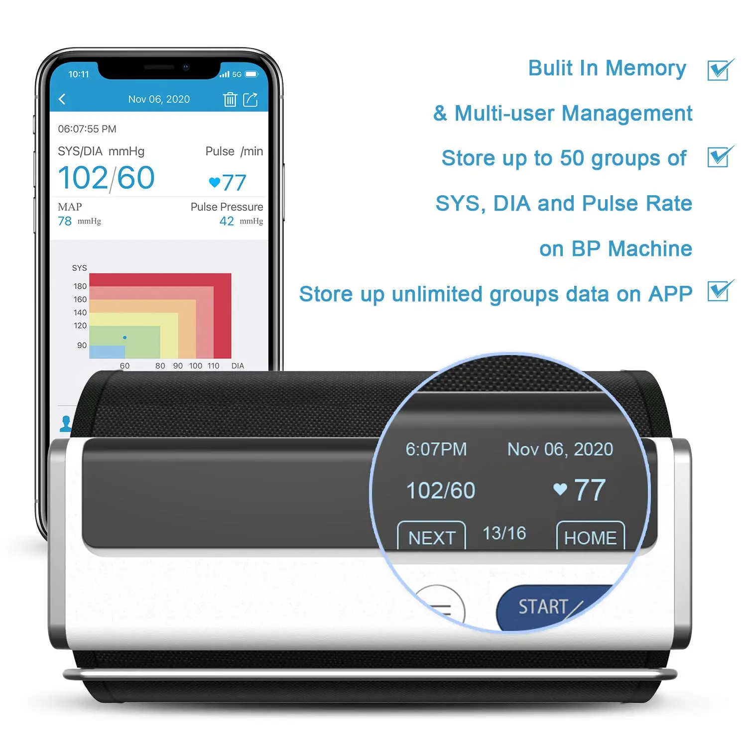 Купить iOS & Android Smart Bluetooth Blood Pressure + EKG Monitor with Arm Cuff Multi-Users Management with Free APP за 5450рублей