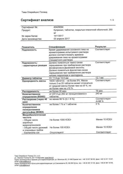 Купренил 250 мг 138 фотографий