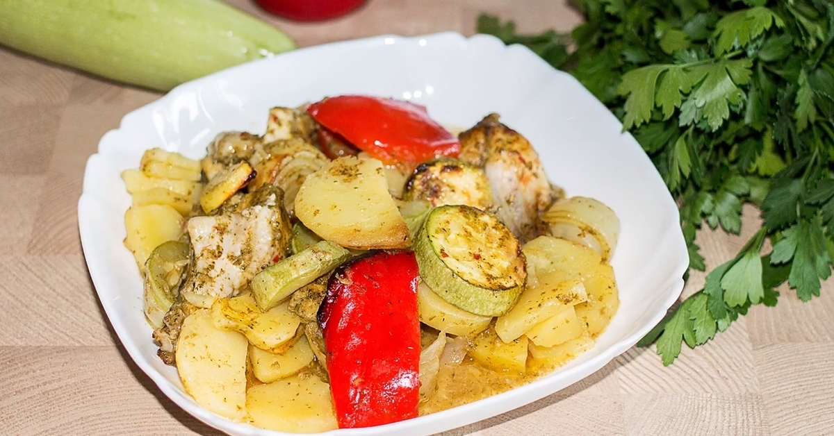 Курица кабачок в рукаве
