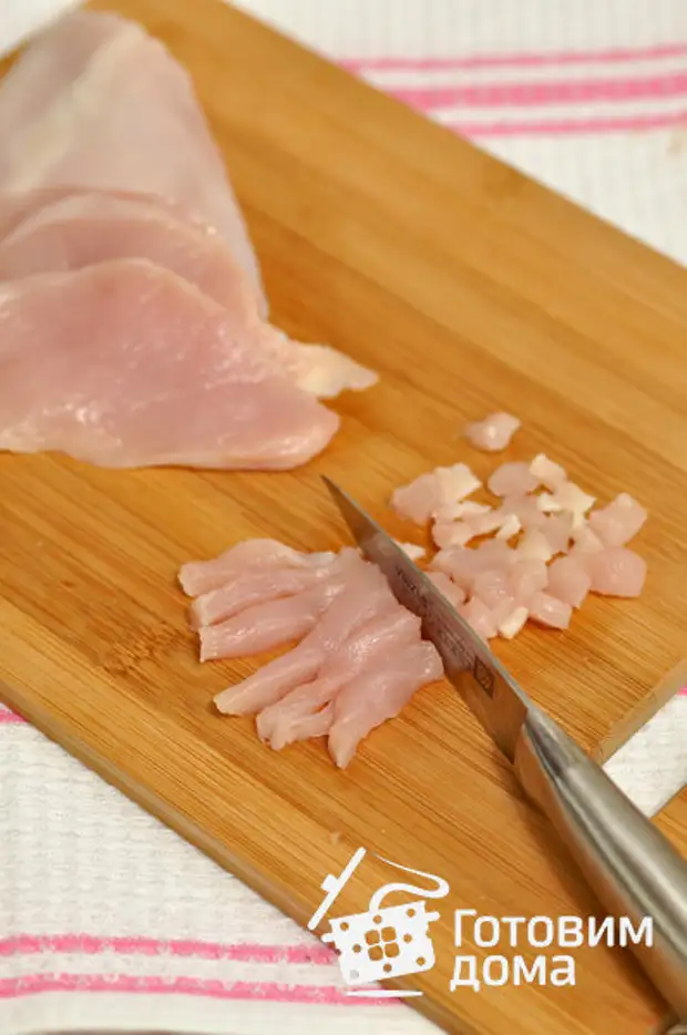 Куриную грудку мелко нарезать 100 фотографий