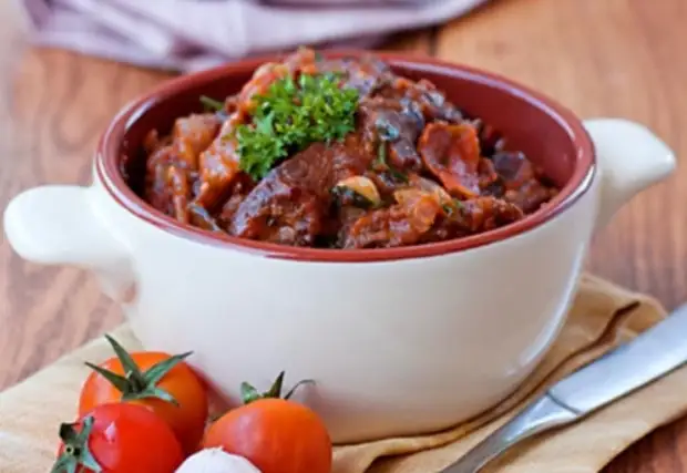 Рецепт: Тушеные куриные потроха