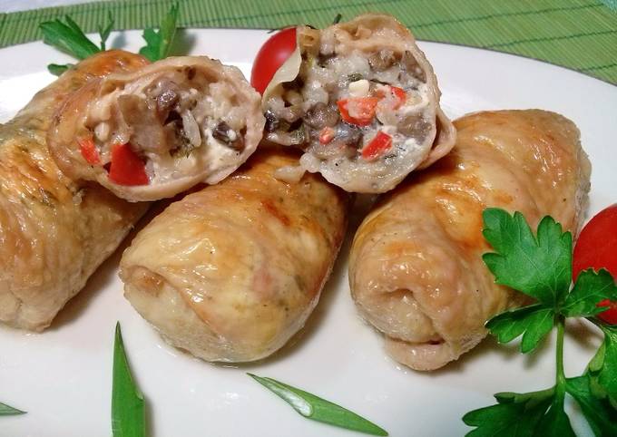 Куриные шкурки с грибной начинкой А вот еще один очень аппетитный рецепт рулетиков из куриной шкурки . Сочетание вкусов курицы, грибов, сыра пользуется особенным успехом, и в рулетиках . . .
