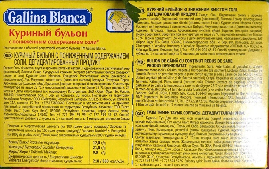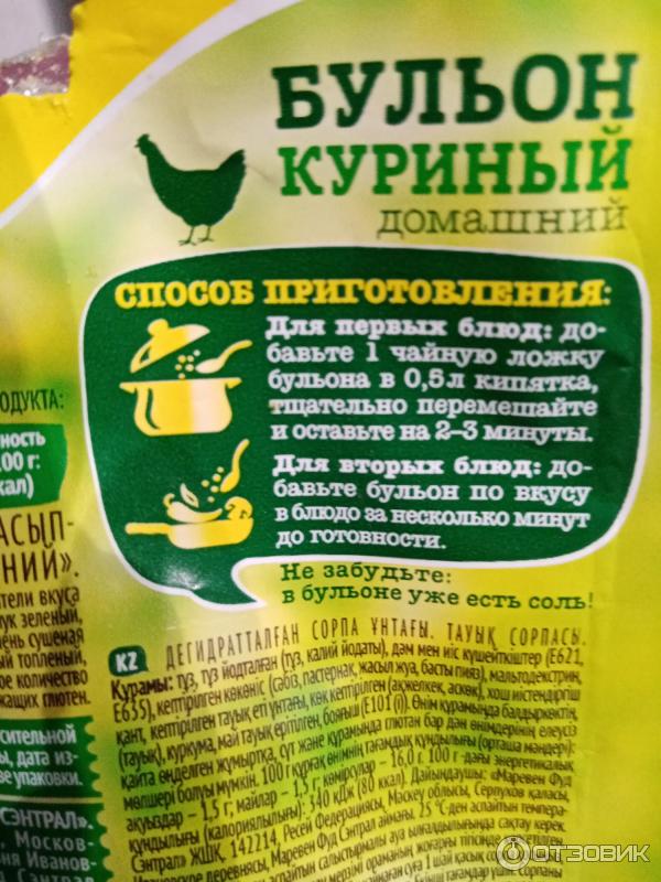 Куриный бульон содержание