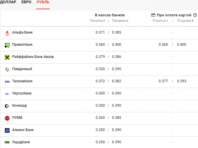 Курс рубль гривня