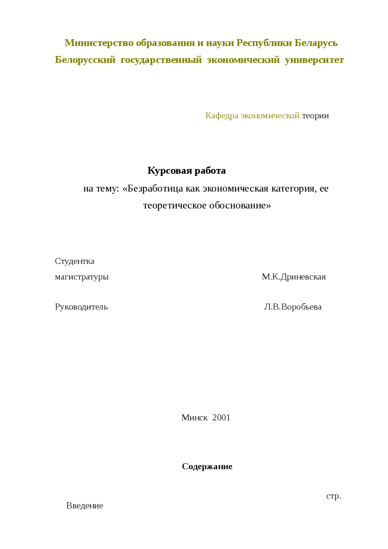 Курсовая Работа Безработица В Республике Беларусь