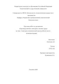 Оценка рабочего места оператора ПЭВМ курсовая по . . .