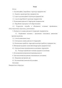 Коротка характеристика підприємства . Аналіз організаційної структури підприємства . Аналіз виробничої структури підприємства . Планування діяльності підрозділів підприємства . Виробнича програма та її обґрунтування .