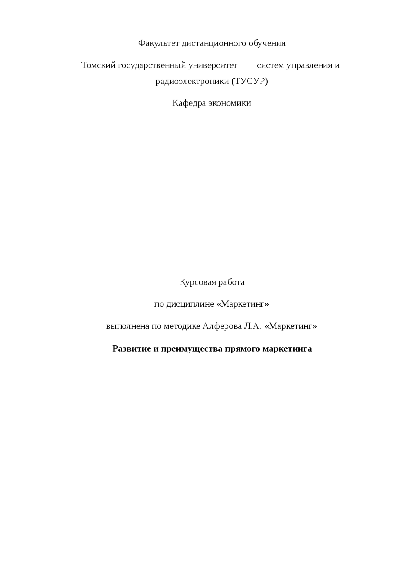 Прямой маркетинг как элемент системы маркетинговых . . .