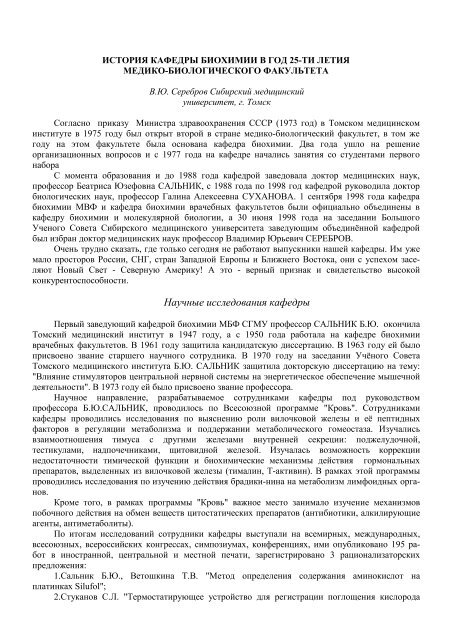 Программа учебной дисциплины "Биохимия" - Учебное пособие