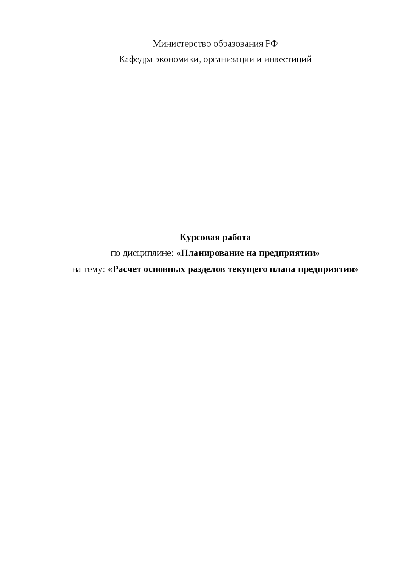 Курсовая работа . по дисциплине: «Планирование на предприятии» на тему: «Расчет основных разделов текущего плана предприятия» Содержание . Введение .