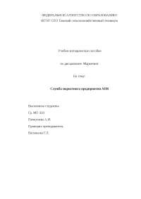 Кафедра экономики и управления предприятиями АПК . Курсовая работа на тему: «Развитие маркетинга на предприятиях АПК» (на примере ОАО «Городской молочный завод №1)