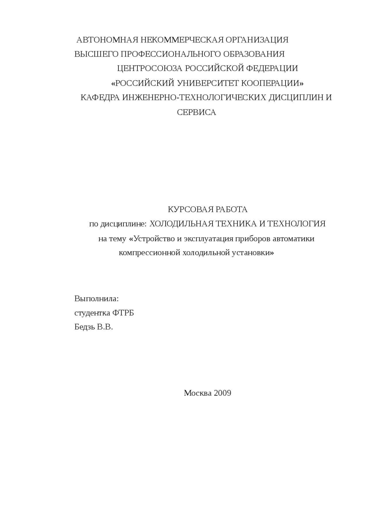 курсовая работа по предмету Производство и технологии на тему: Устройство и эксплуатация приборов автоматики компрессионной холодильной установки - понятие …