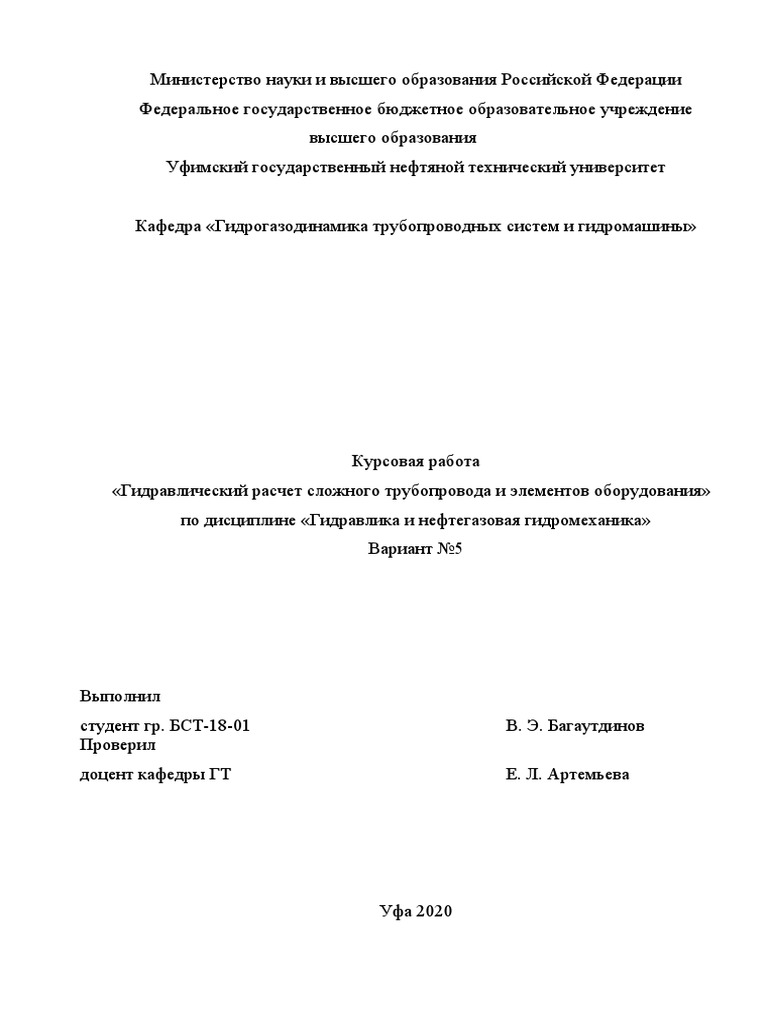Курсовая работа по теме Гидравлический расчет трубопроводных систем