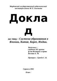 Современная дошкольная и школьная система образования в Китае и Японии . Курсовая работа (Теория) по педагогике . 33 Кб / 40 стр / 8381 слов / …