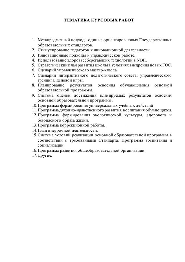 Перечень тем курсовых работ