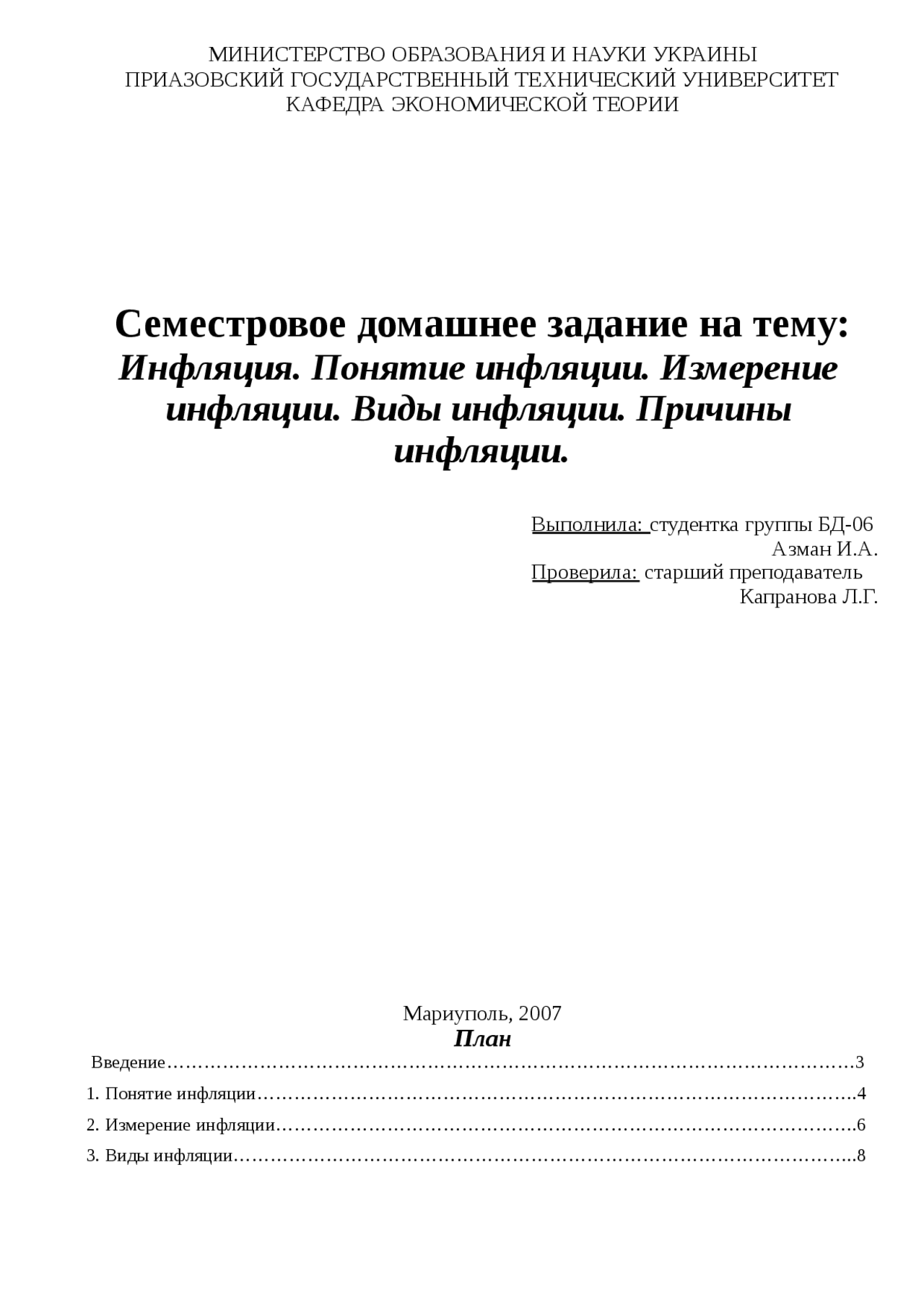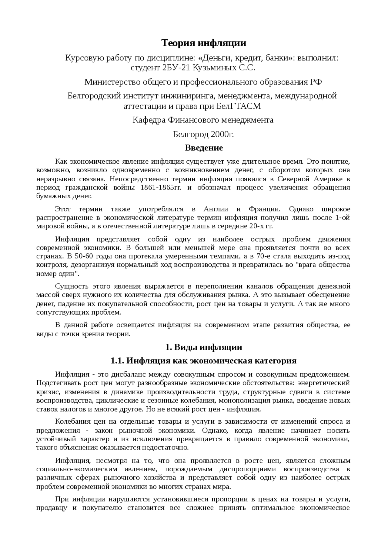 Курсовые работы инфляция