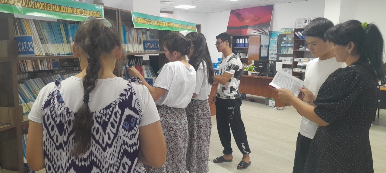 Zomin tuman Axborot-kutubxona markazida "Taraqiyyot" MFYda istiqomat qiluvchi bir guruh o'quvchi kitobxonlar uchun, kutubxona bo’ylab sayohat uyushtirildi. Zomin tuman axborot-kutubxona markazi Abonoment va foydalanuvchilarga xizmat ko'rsatish xizmati mutaxassislari D.Alibekova, F.Mamatqulova tomonidan kutubxona haqida kitobxonlarga to'liq va batafsil ma'lumotlar berildi. Kelgusida kitobxon yoshlarimiz o'zlari qiziqqan adabiyotlarini olib o'qish imkoniyatiga ega bo'lish maqsadida, kutubxonaga a'zo bo'lish va bundan ko'zlangan asosiy maqsad yosh kitobxonlarning bilim saviyasi va insonlar bilan xushmuomala bo'lishlarini ta'minlash, bolajonlarning ongu tafakkuri va dunyoqarashini yuksaltirish, ona Vatanga muhabbat va sadoqat tuyg'usini shakllantirishdir.Haqiqatan ham, kitob o'qigan har bir bola kelajakda, qaysi sohada ishlamasin, teran fikrlash, oqu qorani ajratish, murakkab vaziyatlarda oqilona qaror qabul qilish ko'nikmasiga ega bòladi.