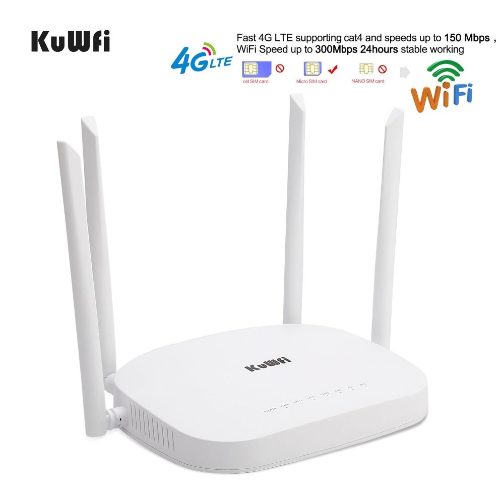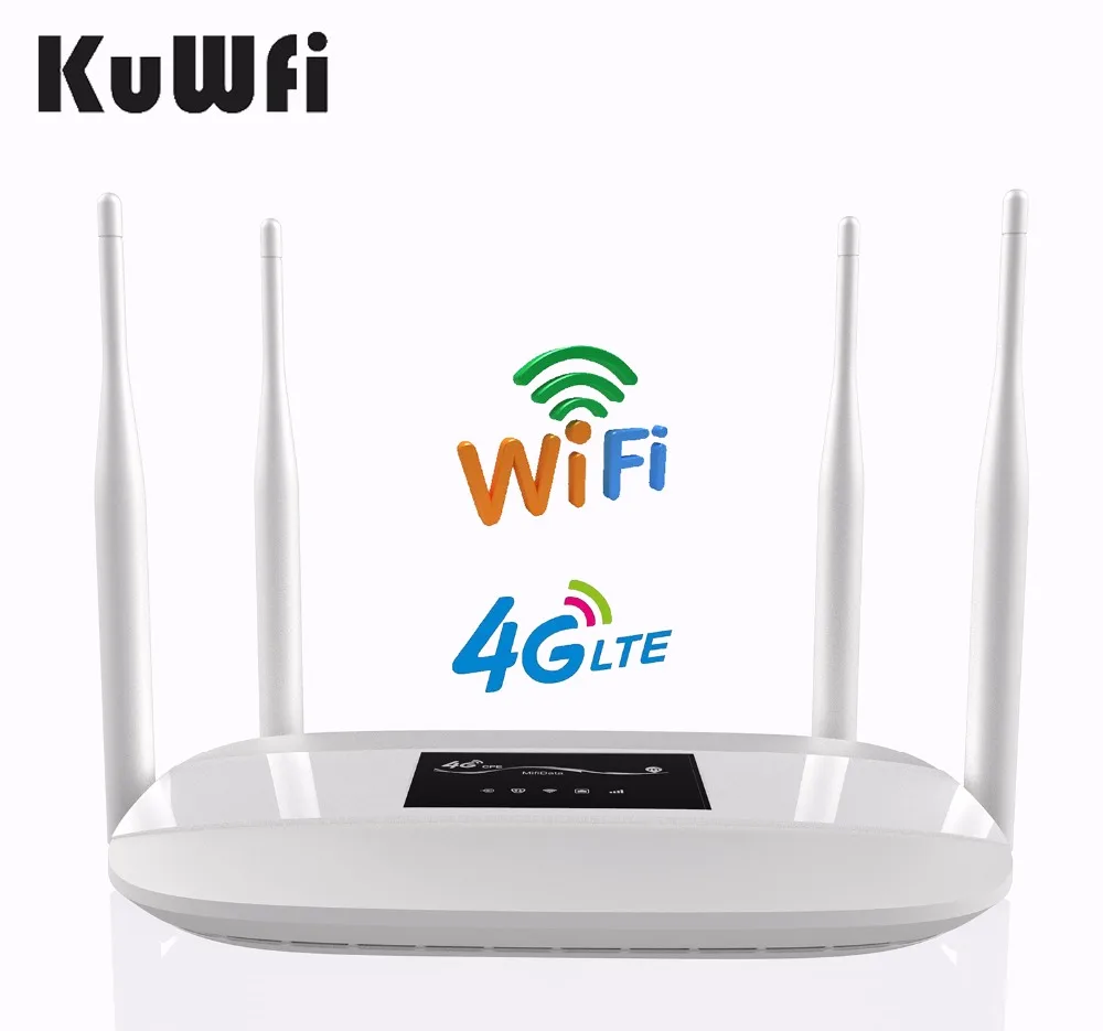 KuWfi 4G Sim Card Wifi Router CAT4 150Mbps Wireless CPE . . .