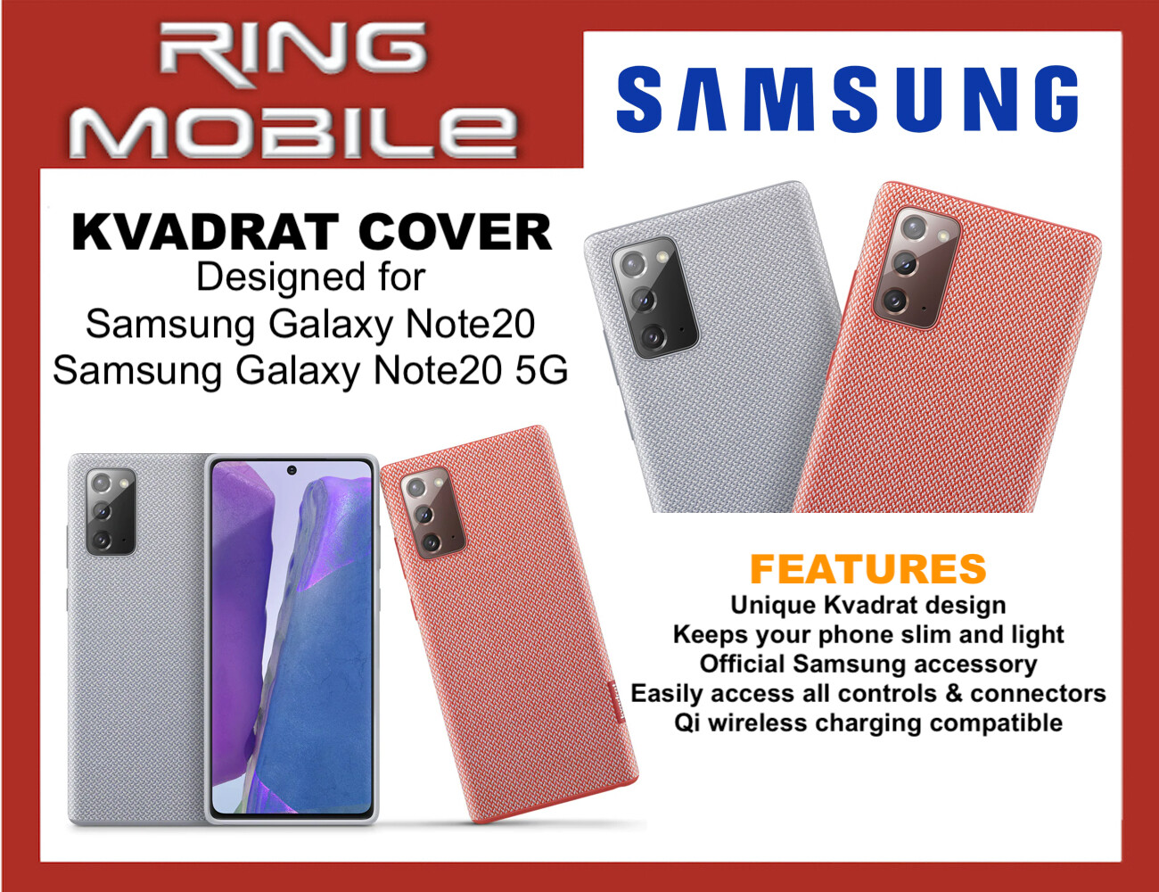 This item: SAMSUNG Galaxy Note 20 Case, Kvadrat Cover - Red (US Version ) (EF-XN980FREGUS) $12 .45 . Only 6 left in stock - order soon . Sold by SUNSHINE DEALS 123 and ships from Amazon Fulfillment . FREE Shipping on orders over $25 .00 . SAMSUNG Galaxy Note 20 5G Case, S-View Flip Cover - Black (US Version ) (EF-ZN980CBEGUS)