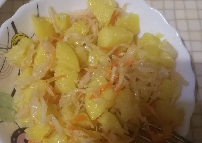 Картошка с квашеной капустой тушеная на сковороде рецепт с . . .