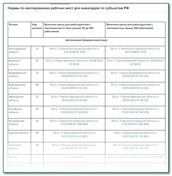 Квота инвалидам 3 группы