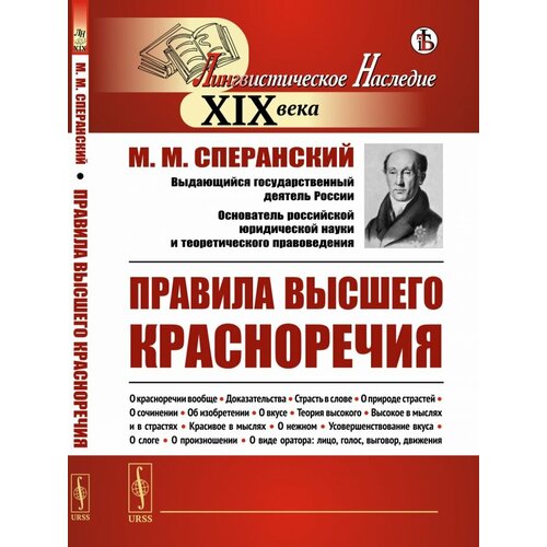Nous présentons à l'attention des lecteurs un livre de l'éminent homme d'État russe M. M. Speransky (1772-1839), qui est un manuel d'éloquence russe. L'idée principale du manuel, qui contient, en langue moderne, un solide cours de théorie de la littérature et de l'oratoire : « Ce n'est pas une syllabe, pas une expression, pas des mots qui renforcent une pensée : les pensées sont agrémentées de pensées. .» Le livre utilise les œuvres d'Homère, d'Aristote, d'Horace, de Cicéron, de Virgile, de Lucrèce et de nombreux autres auteurs ; une analyse comparative détaillée et hautement professionnelle des traductions de l'ode « Bonheur » de Jean Baptiste Rousseau par M. V. Lomonosov et A. P. Sumarokov est donnée. Le livre sera utile aux philologues de diverses spécialités, aux historiens des langues, aux professeurs de langues, ainsi qu'à tous les lecteurs intéressés à la fois par la culture de la parole russe et par l'histoire de notre patrie.