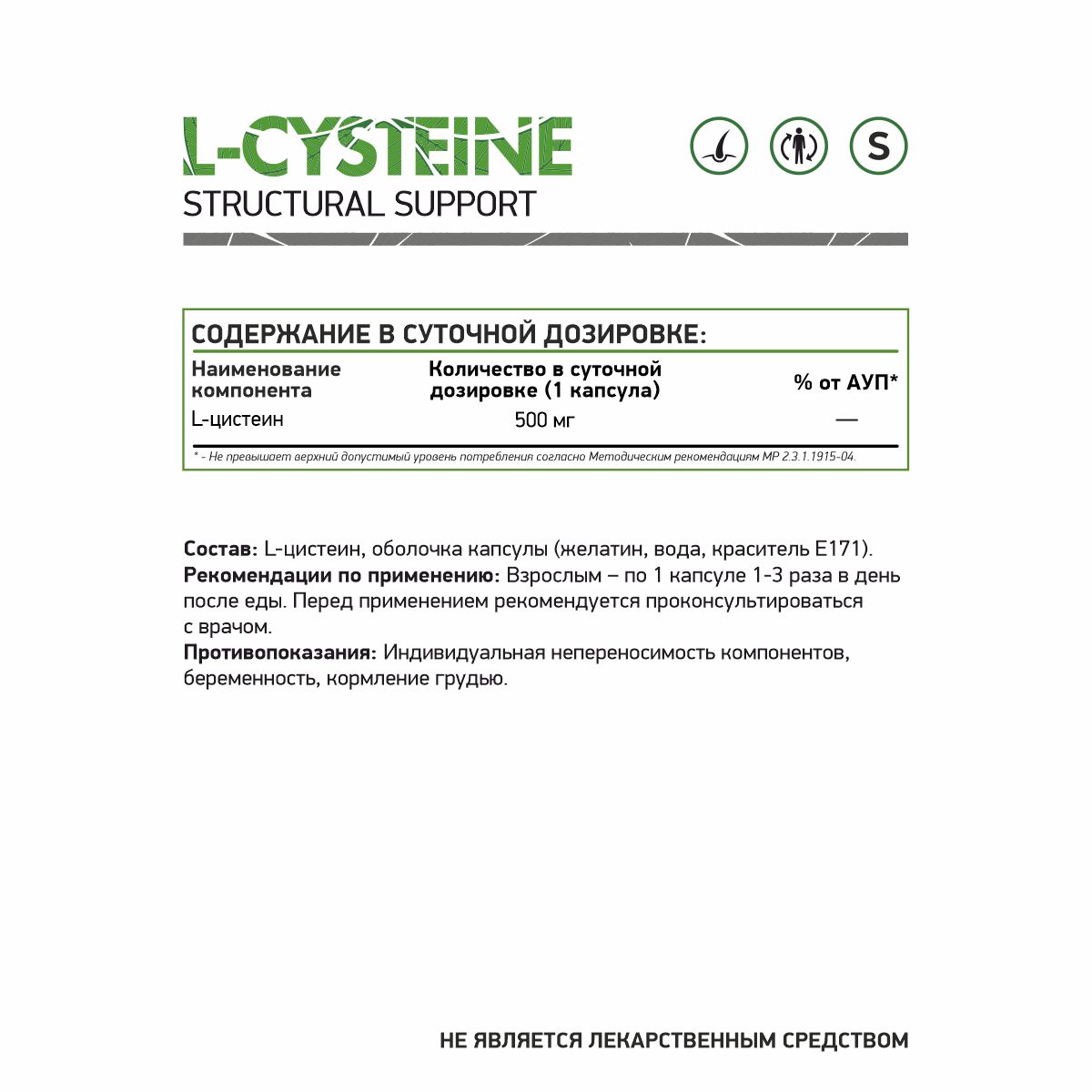 l -Цистеин 200мг l -метионин 120мг Цинк 15мг Витамин Е 10 МЕ Витамин А 2667 me