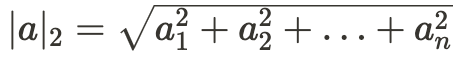 Такую норму называют евклидовой, или нормой L₂ (нижний индекс 2 показывает, что при расчёте использованы квадраты). Квадрат этой нормы равен сумме квадратов координат.