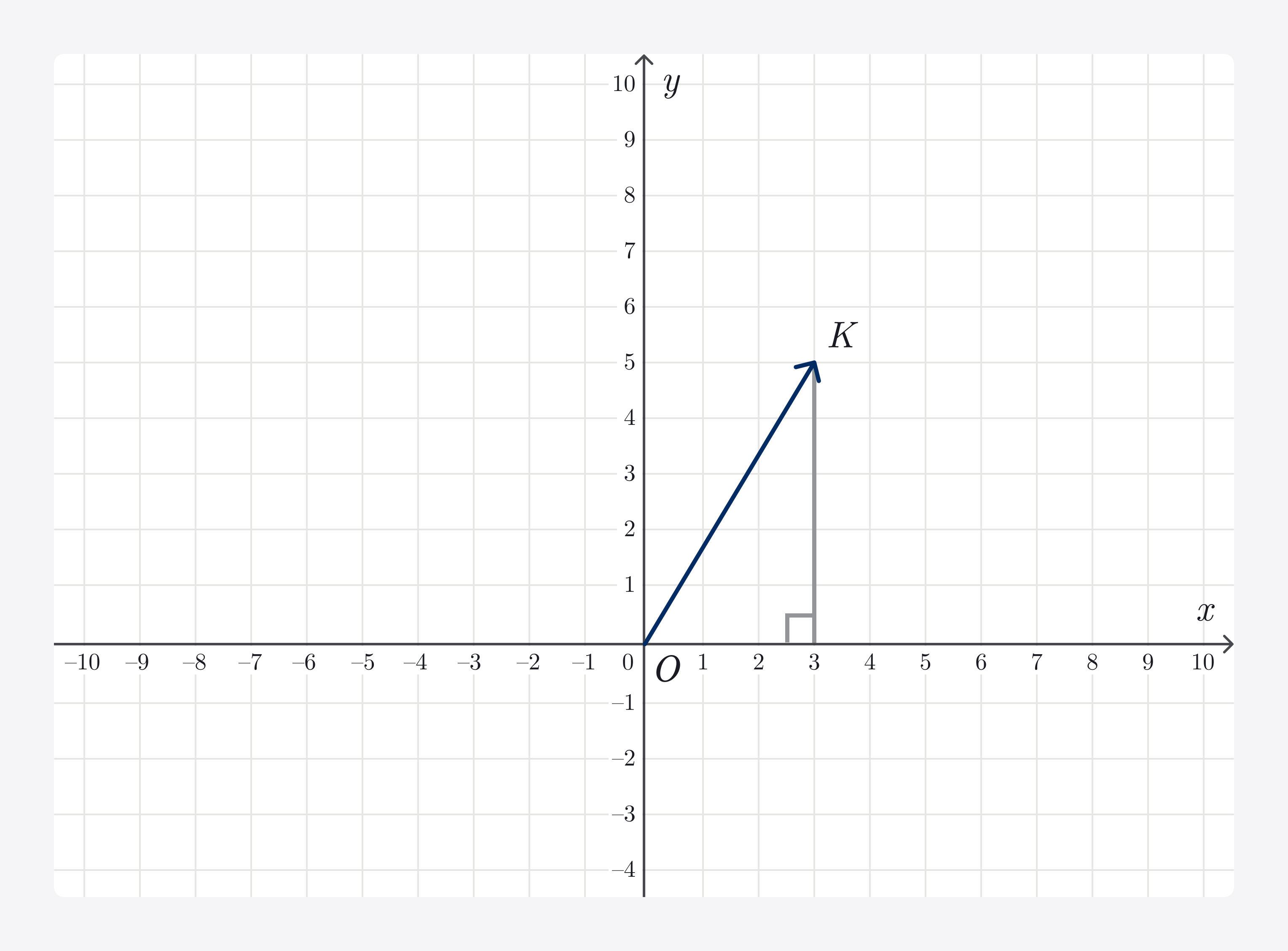 Наш вектор — это гипотенуза, и квадрат его нормы равен сумме квадратов катетов: |OK|² = 3²+5² = 34, отсюда |OK|≈5.8.