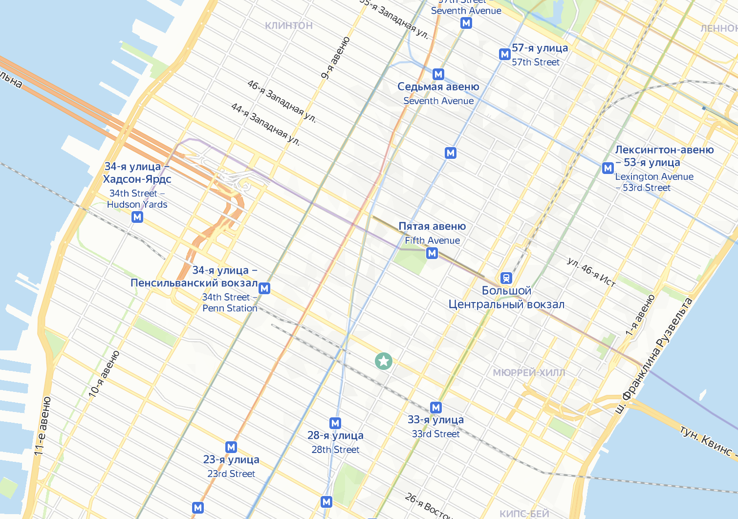 У этой нормы много названий: прямоугольная метрика, метрика прямого угла, метрика городского квартала, норма такси, метрика Манхэттена. Последние варианты связаны с реальной географией: улицы Манхэттена в Нью-Йорке образуют прямоугольную сетку, поэтому длина пути от одной точки до другой — это сумма отрезков, расположенных под прямым углом друг к другу.