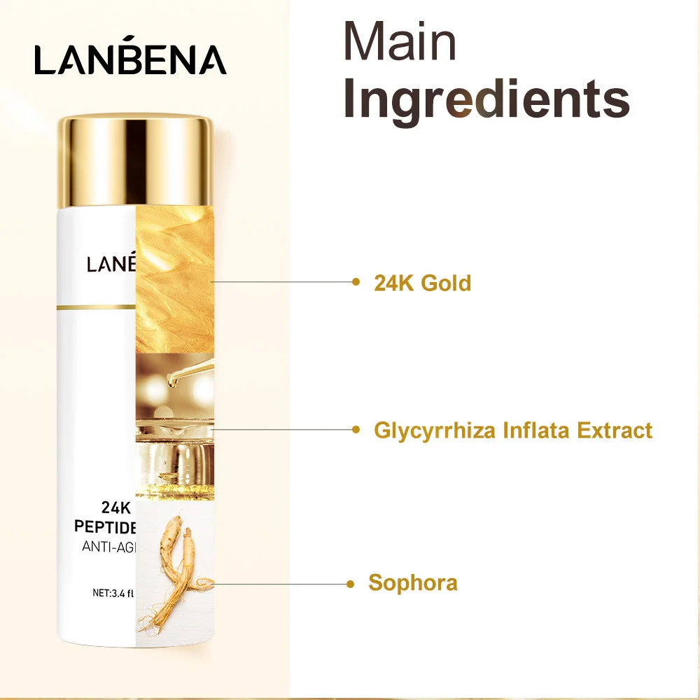 «LANBENA 24K Gold Peptide Anti Aging Set Essence Firming Face Cream Toner Cleanser Remove Dark Circles Eye Cream Serum Kit 5PCS» по лучшей цене на рынке! Всего за 31$ (2945рублей)