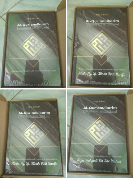 Kebutuhan wakaf Mushaf Al-Qur'an Tahap : 12, ke Ponpes Al-Qur'an Yabipa - Cimenyan Bandung Sejumlah 54 Mushaf sudah terpenuhi.