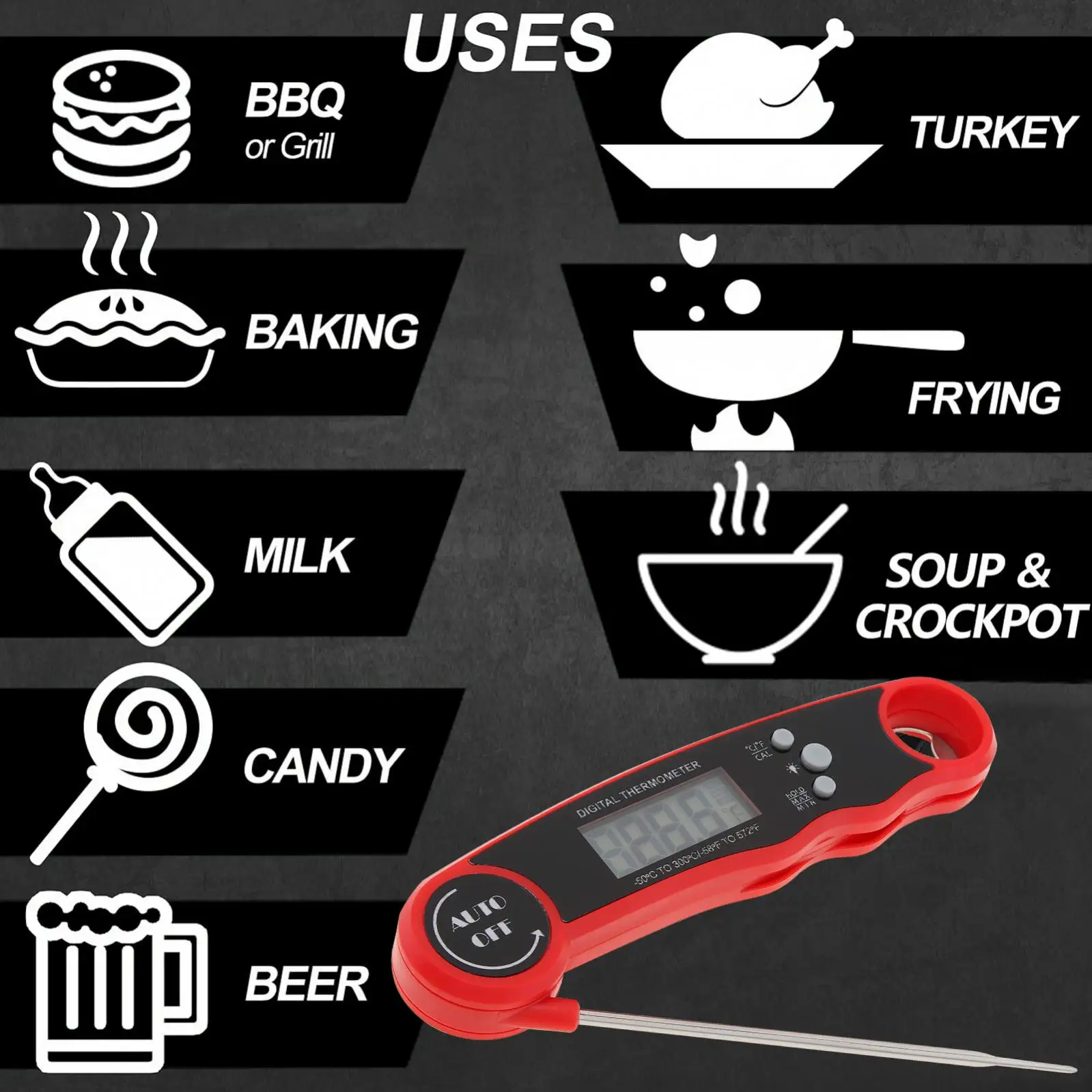 DGRATGsjkHere you can buy LCD Display Digital Instant Read Meat Food Thermometer with 4.6inch Folding Probe Backlight, Calibration Function for Cooking with free delivery to your post office.