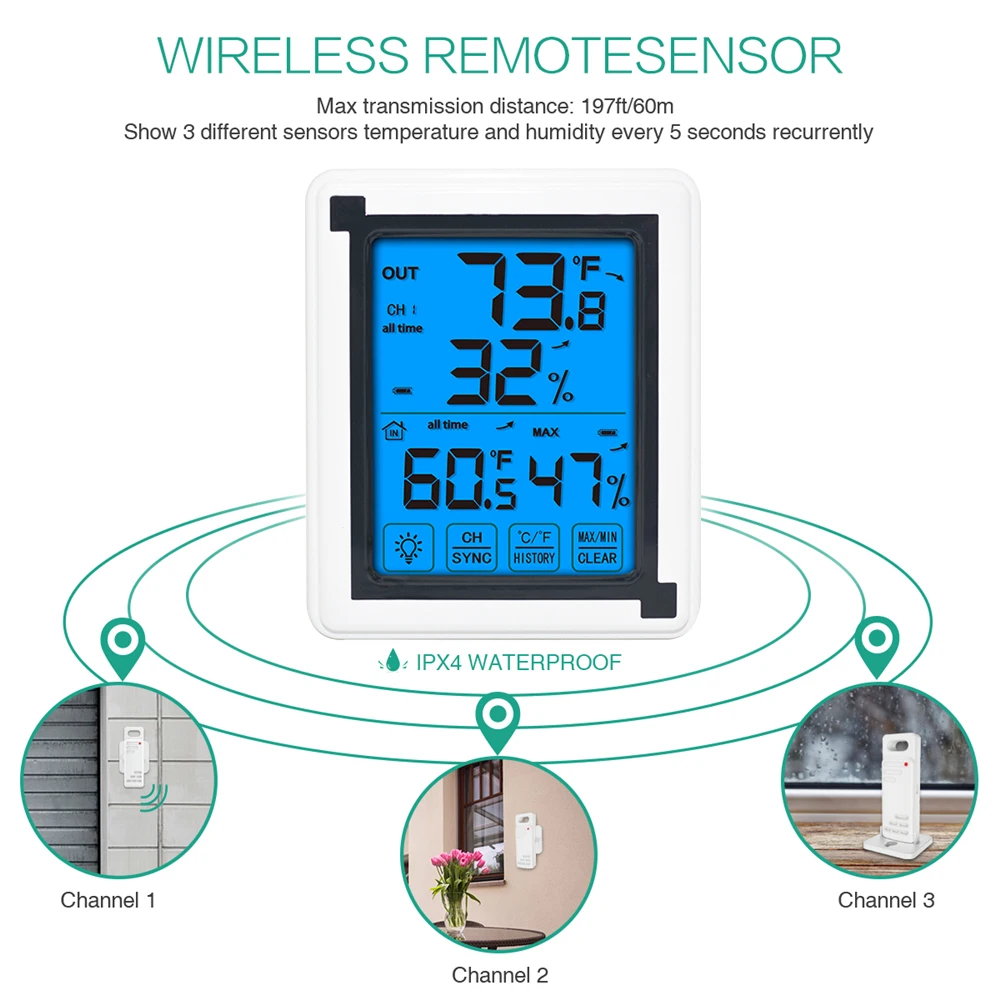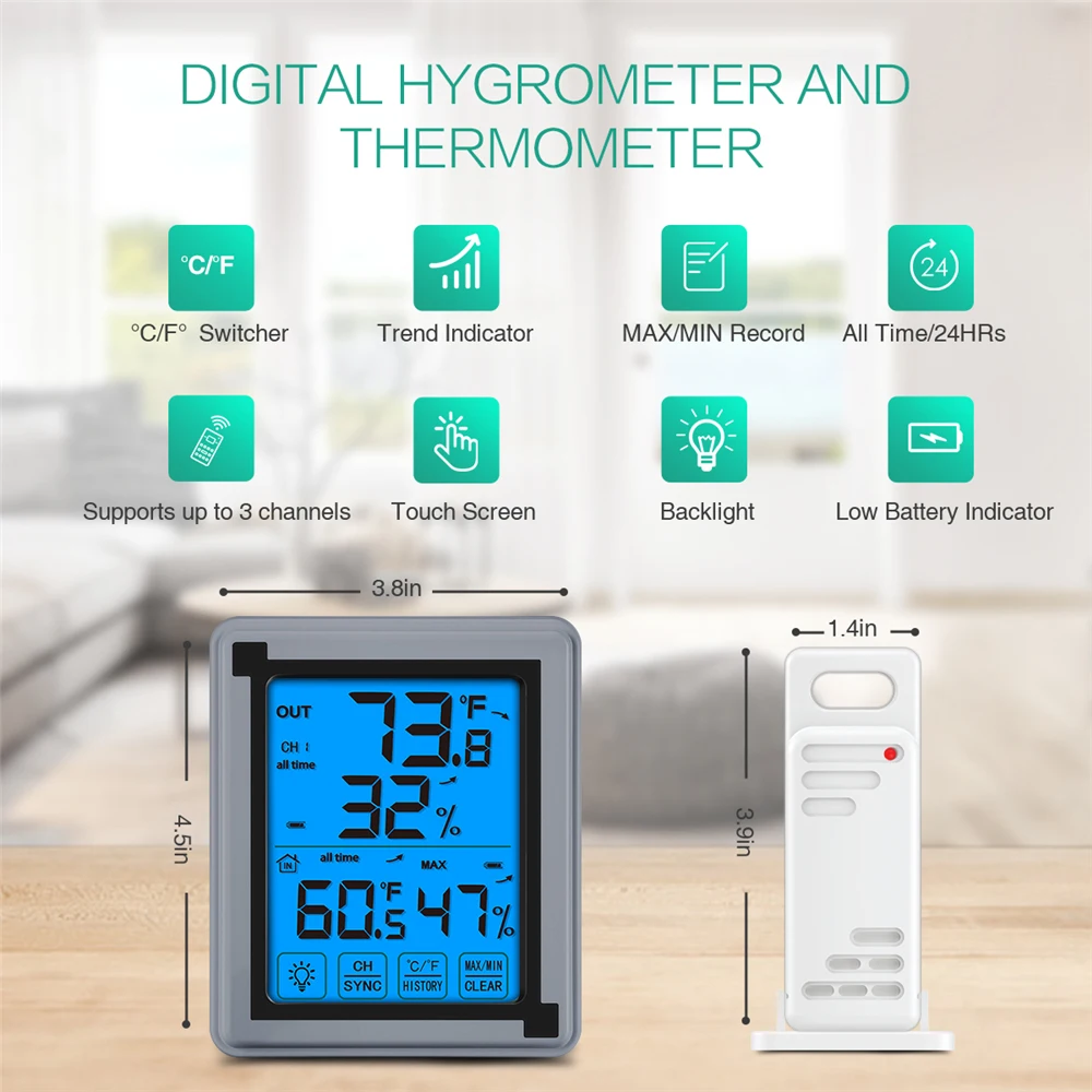 LCD Touch Screen Wireless Thermometer Digital Hygrometer Thermometer Outdoor Sensor Humidity Monitor For Home Office Baby Room - Купить с бесплатной доставкой