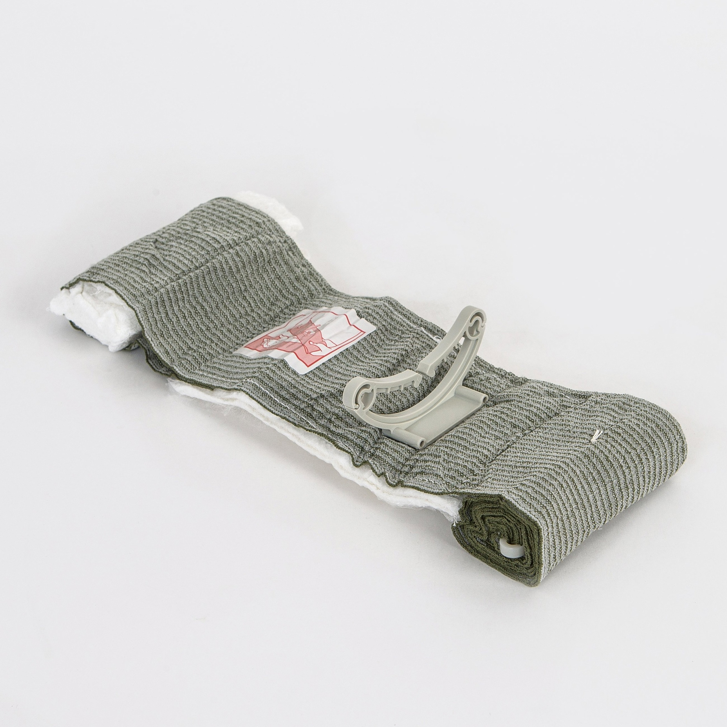 ● Пластиковая скоба с зубцами позволяет быстро, легко и надёжно фиксировать край повязки.
