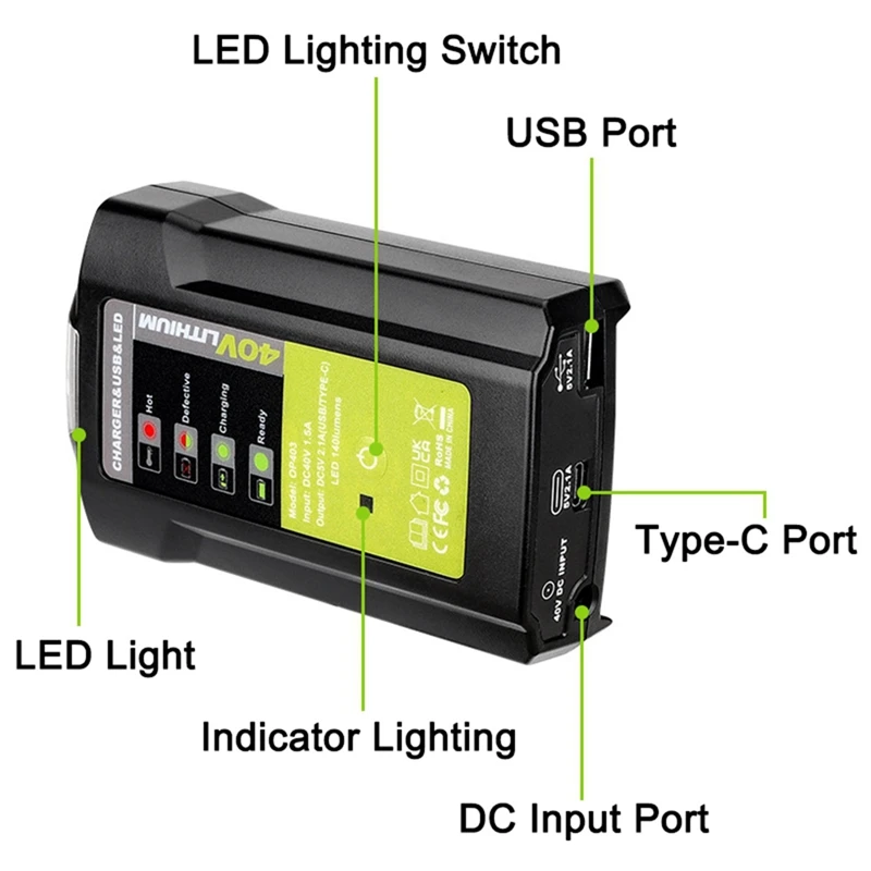 RkNLhbjqUHere you can buy LED Adapter Only With USB For Ryobi 36-40V Battery LUB40V Charger Overcharge Protection With DC Emergency Lights with free delivery to your post office.