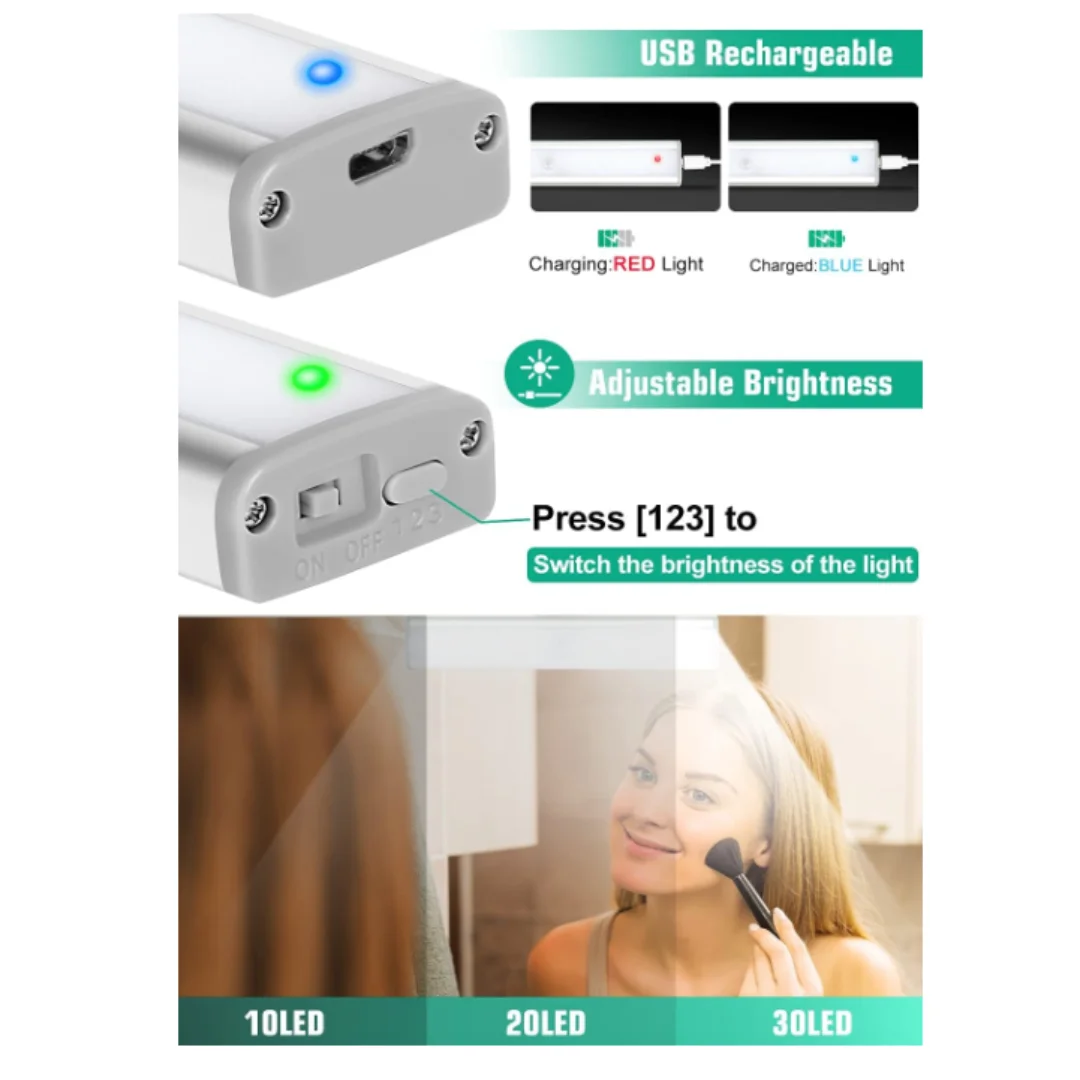 "LED Bars Motion Sensor Lights, 30-LED Wireless Under Cabinet Lighting, LED Closet Lights, Rechargeable Led Strip Lights" * Buy Now With Free Shipping Just For $8