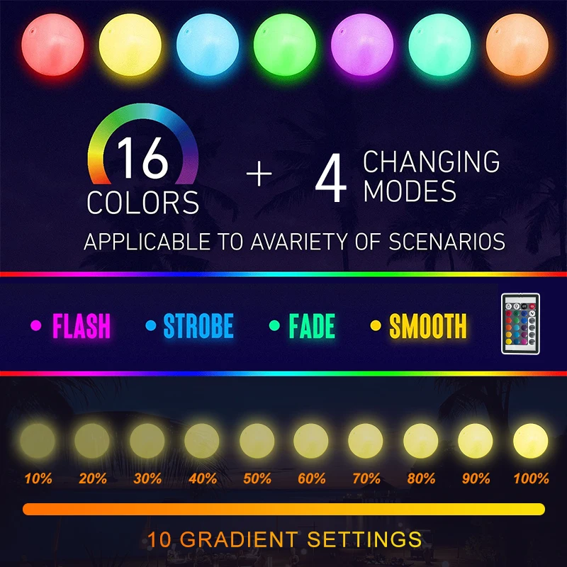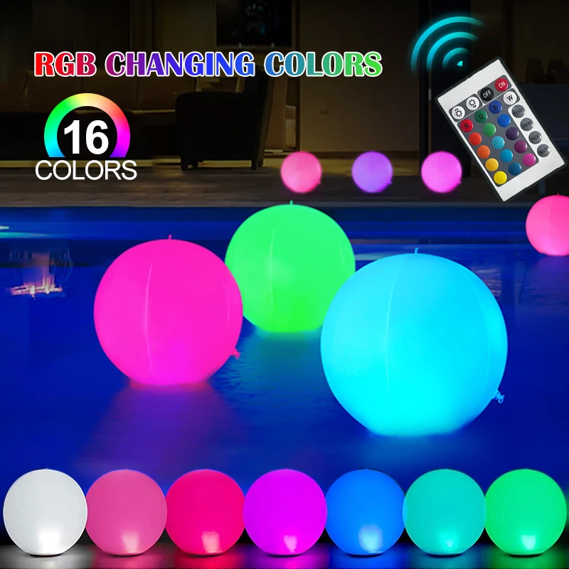 LED Beach Ball with Remote Control RGB 16 Colors 4 Modes Lights Waterproof Inflatable Balloons for Pool Party Games Garden Decor - Купить с бесплатной доставкой