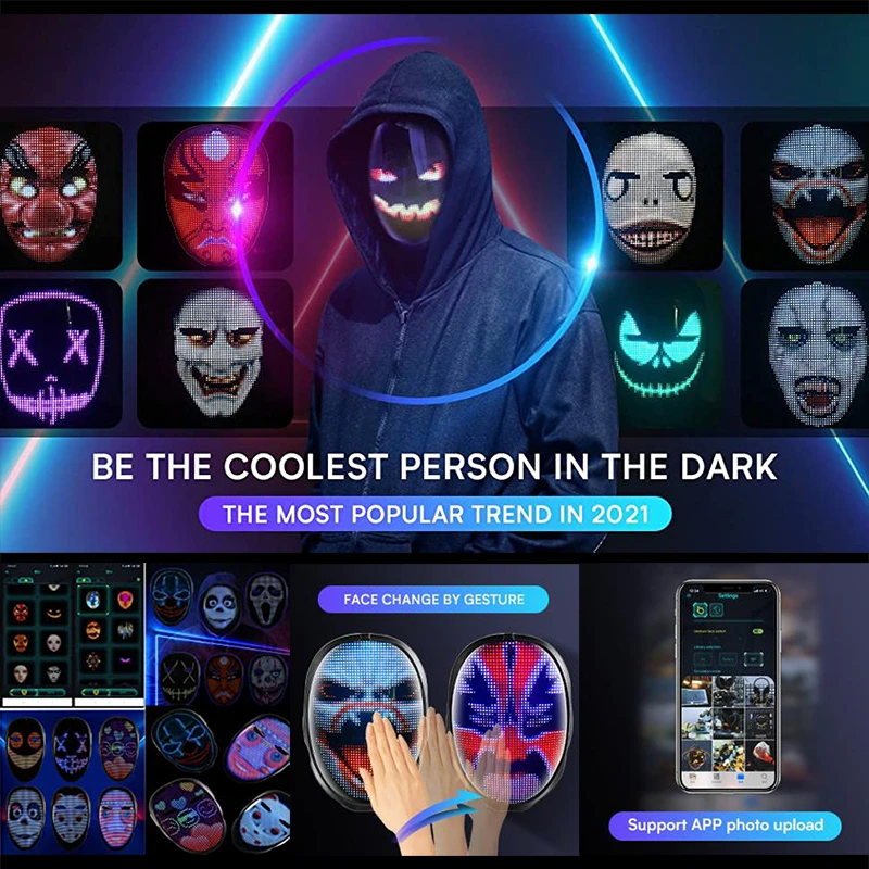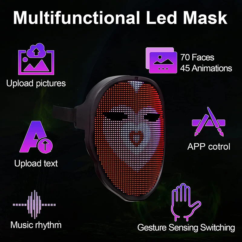 vOHakmUXHere you can buy LED Bluetooth Lnduction Changing Face Light-emitting Mask APP Control DIY Picture Programmable Party COSPLAY Christmas Gift with free delivery to your post office.