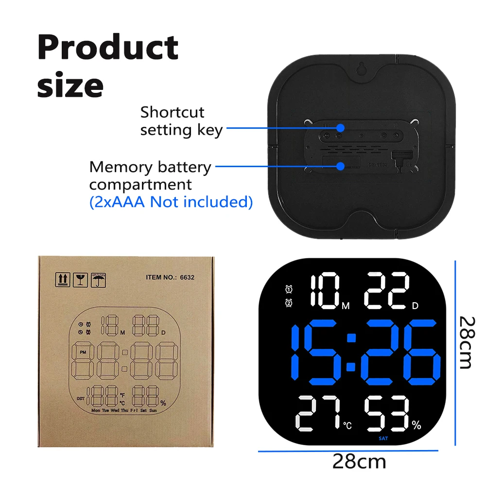 UYJOvNHJdzHere you can buy LED Digital Wall Clock Large Screen Temperature Humidity Date Week Calendar Display Electronic Alarm Clock with Remote Control with free delivery to your post office.