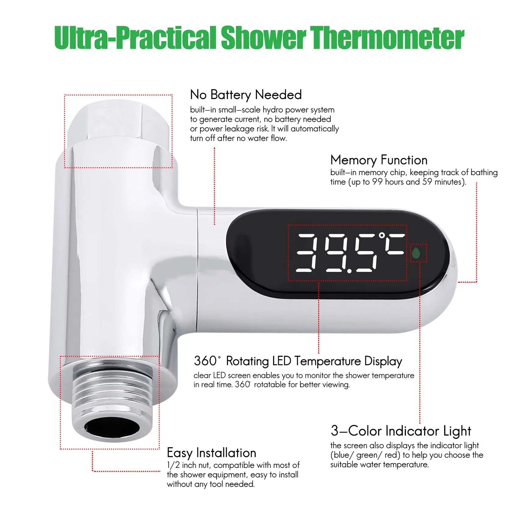 nwVdIJbCHere you can buy LED Display Home Water Shower Thermometer Flow Self-Generating Electricity Water Temperature Meter Monitor for Baby Care with free delivery to your post office.